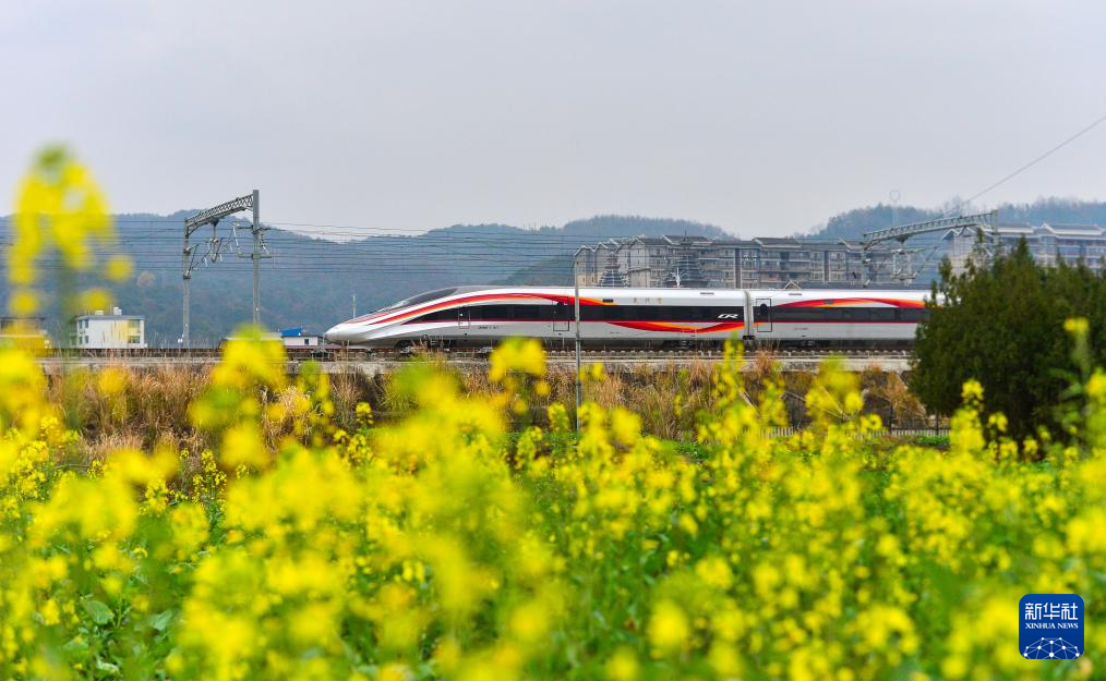 1月9日,一列动车组列车在贵州省从江县境内行驶。新华社发(卢忠南 摄)