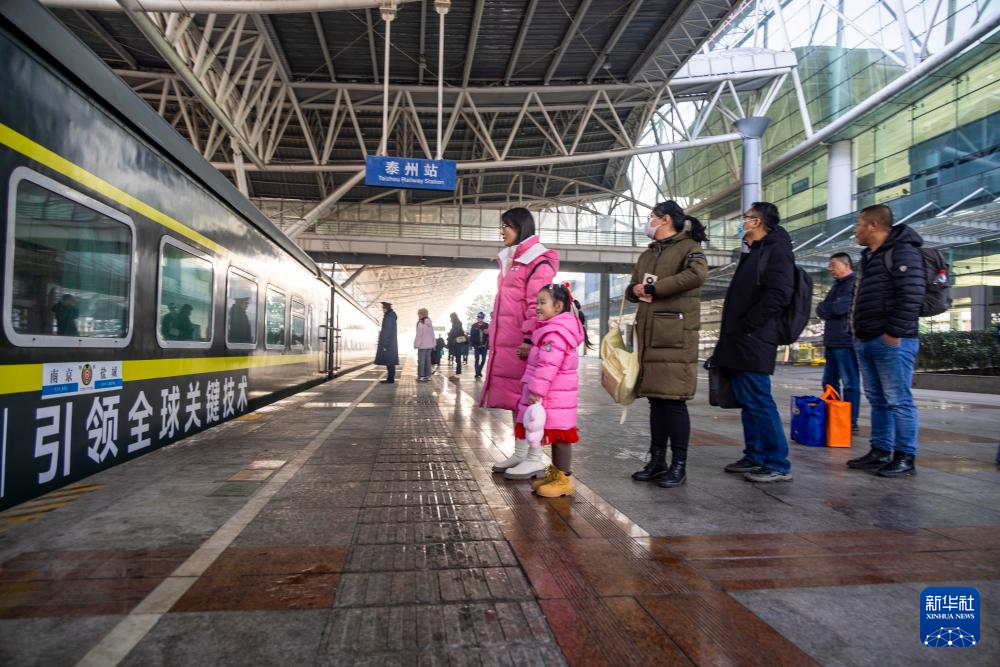 1月9日,旅客在江苏泰州站站台候车。新华社发(汤德宏摄)
