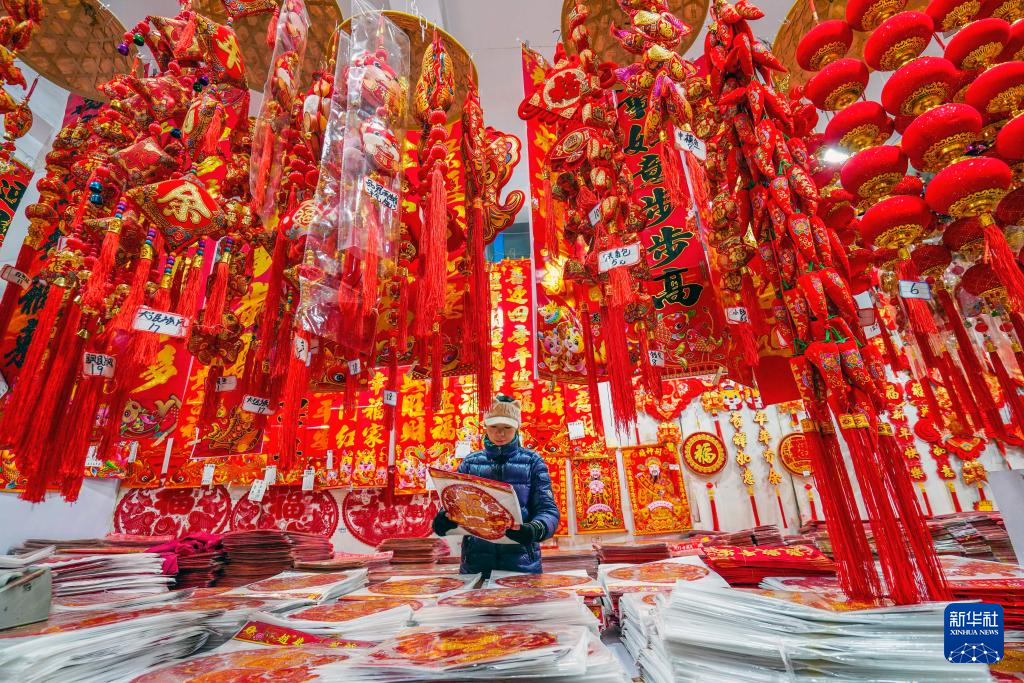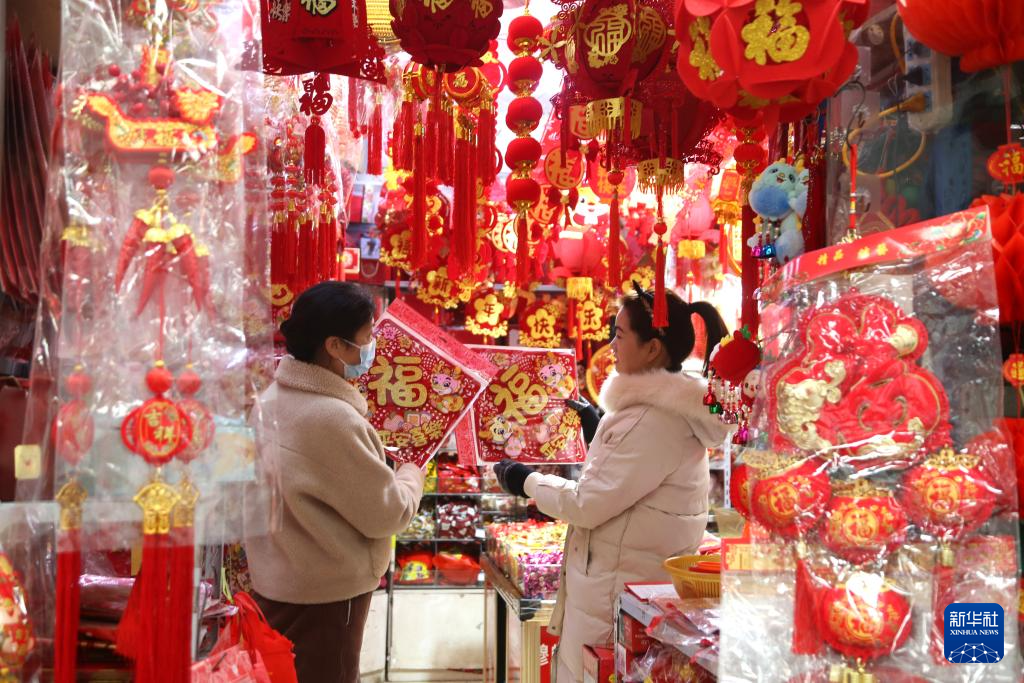 1月13日,市民在江苏省连云港市连云区文化市场内选购新春饰品。新华社发(王春 摄)