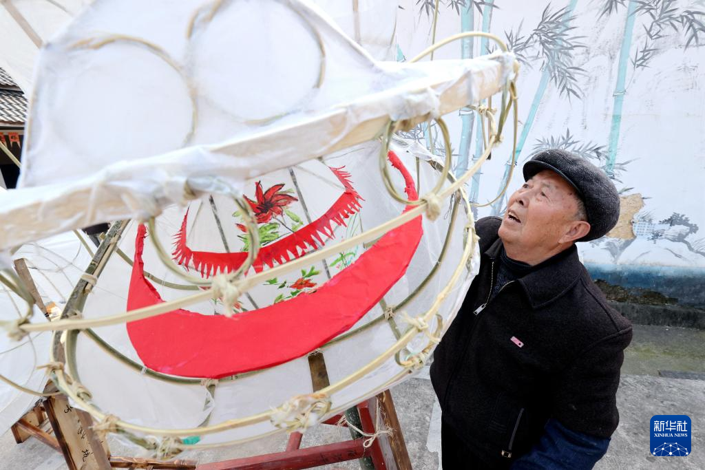 1月16日,浙江省湖州市德清县莫干山镇筏头村村民在制作龙灯。新华社发(谢尚国摄)