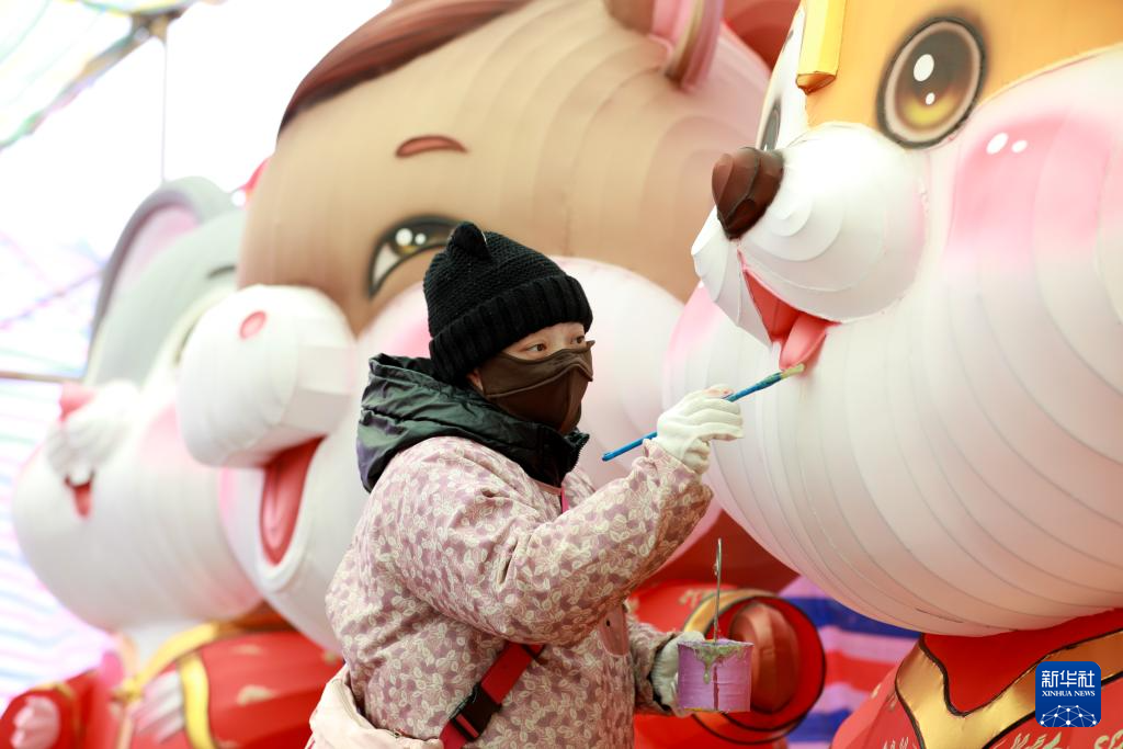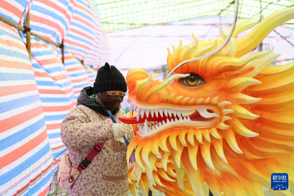 1月16日,在江苏省淮安市洪泽区,工人在制作花灯。新华社发(殷潮摄)