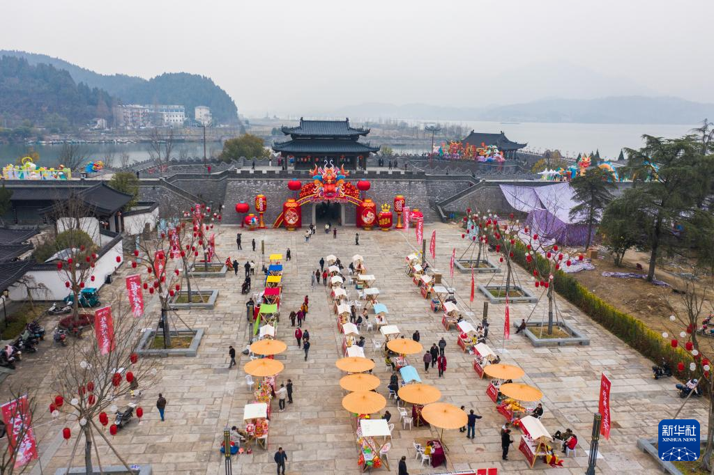 1月18日拍摄的在严州古城内举行的“‘宋’福杭州年——我在建德过大年”活动(无人机照片)。新华社记者 徐昱 摄