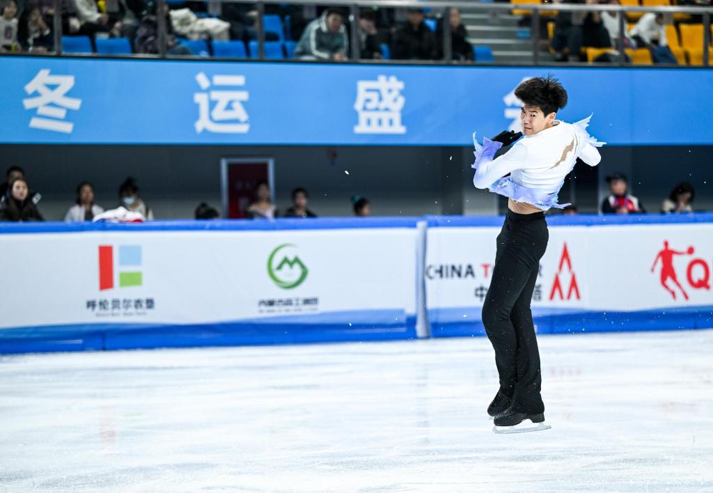 1月18日,北京队选手赵启涵在青年组男子单人滑短节目比赛中,该比赛在内蒙古呼伦贝尔市海拉尔区内蒙古冰上运动训练中心短道花样馆举行。新华社记者 连振 摄