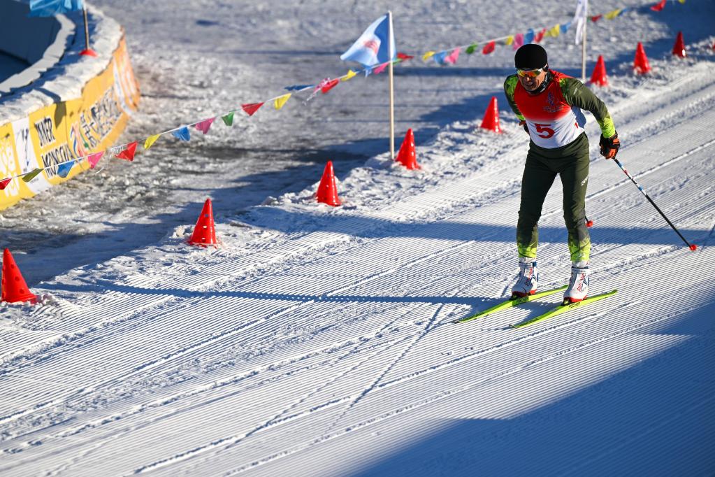 1月14日,内蒙古队选手刘国伟在男子4X1.5公里团体接力(自由技术)决赛中,该比赛在内蒙古呼和浩特市东河冰场举行。新华社记者 贝赫 摄