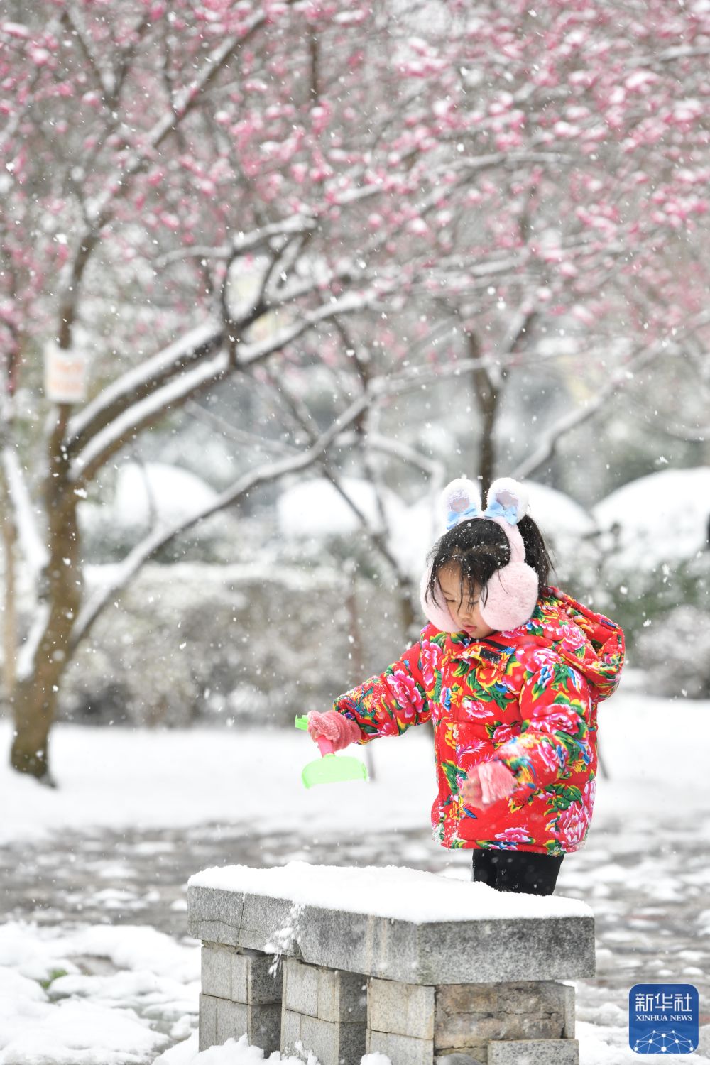 1月22日,一名小朋友在贵州省黔东南苗族侗族自治州黄平县行政中心广场玩雪。新华社发(梁文 摄)
