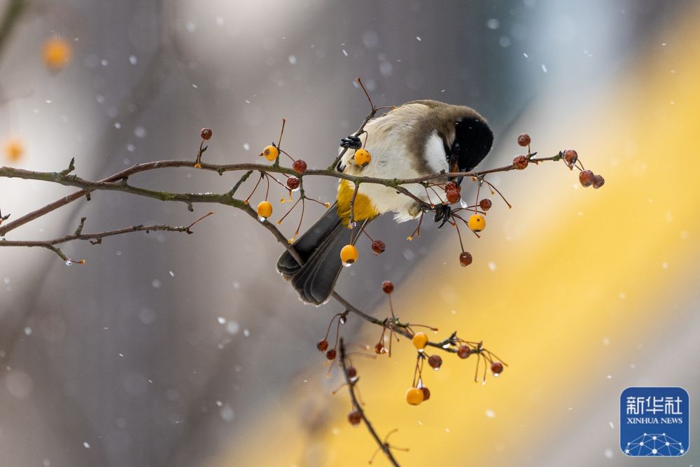 1月22日,在贵州省毕节市百里杜鹃管理区鹏程街道,一只小鸟在觅食。新华社发(李华 摄)