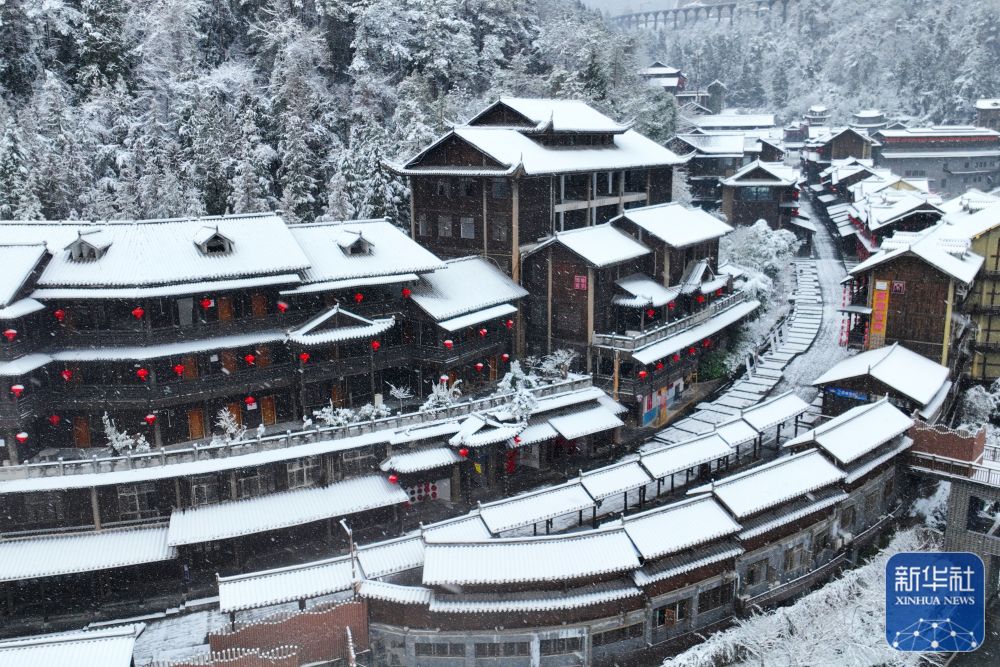 1月22日,重庆市酉阳土家族苗族自治县桃花源景区银装素裹。新华社发(邱洪斌 摄)
