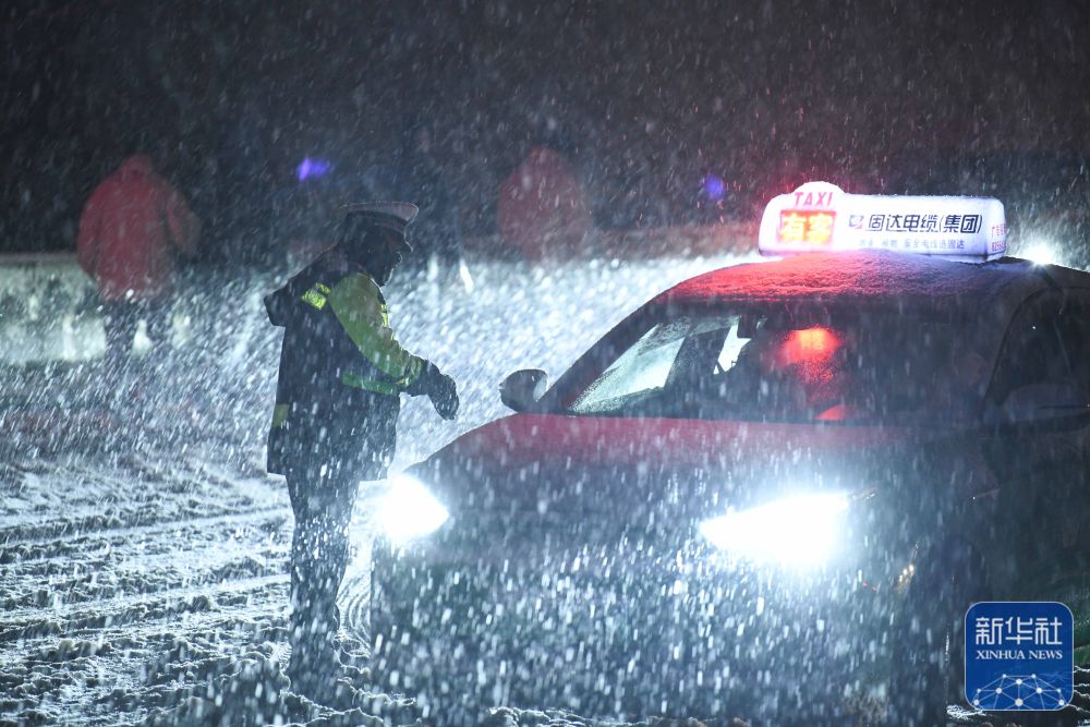 1月21日,交警在贵州省黔东南苗族侗族自治州黄平县新州镇指挥交通。新华社发(王超 摄)