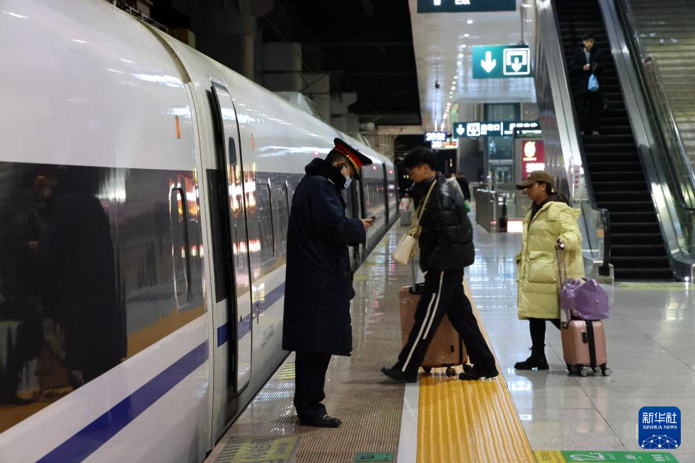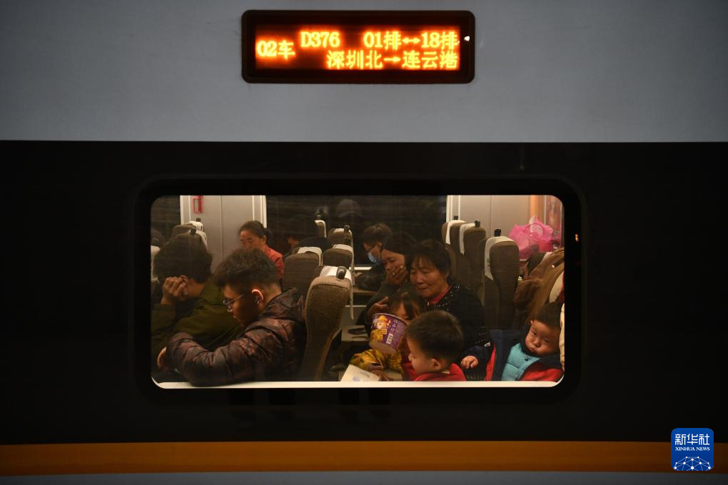 1月26日,旅客在深圳北站乘坐从深圳北开往连云港的列车。新华社记者 梁旭 摄