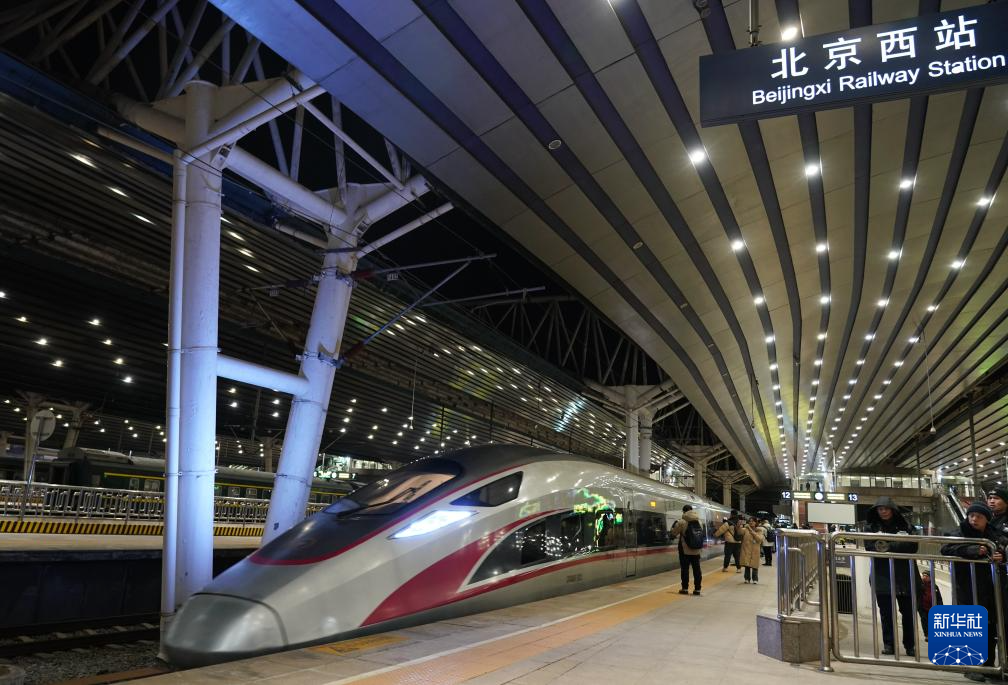 1月26日,G6701次列车驶离北京西站。新华社记者 张晨霖 摄