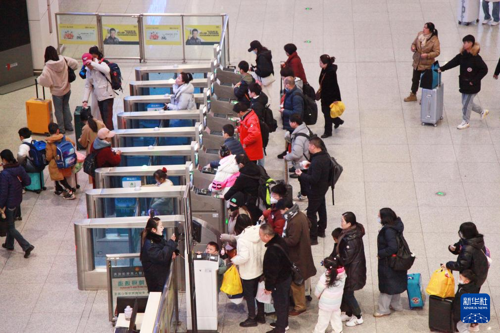 1月26日,旅客在徐州东站排队检票乘车。新华社发(刘建华摄)