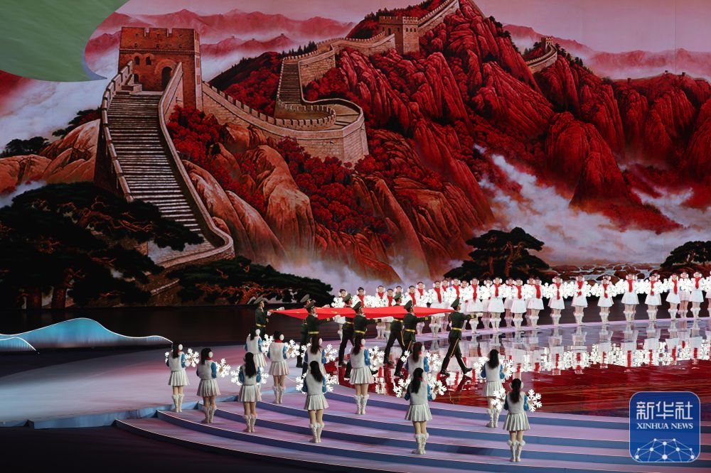 ↑中华人民共和国国旗在开幕式上入场。新华社记者 黄伟 摄