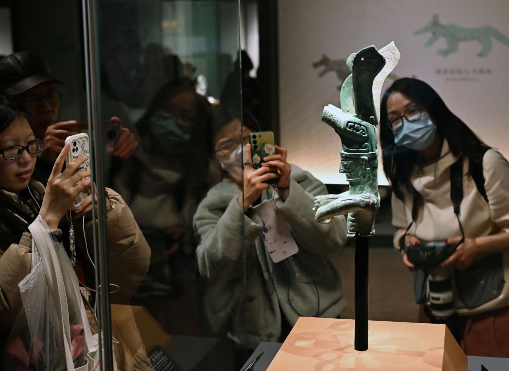 2月15日,游客在上海博物馆东馆参观“星耀中国:三星堆·金沙古蜀文明展”。新华社记者 刘颖 摄