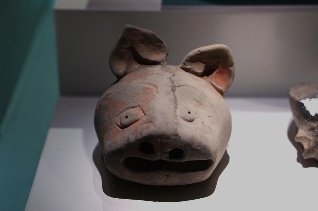 这是2月24日拍摄的殷墟博物馆内展出的陶猪首。新华社记者 任卓如 摄