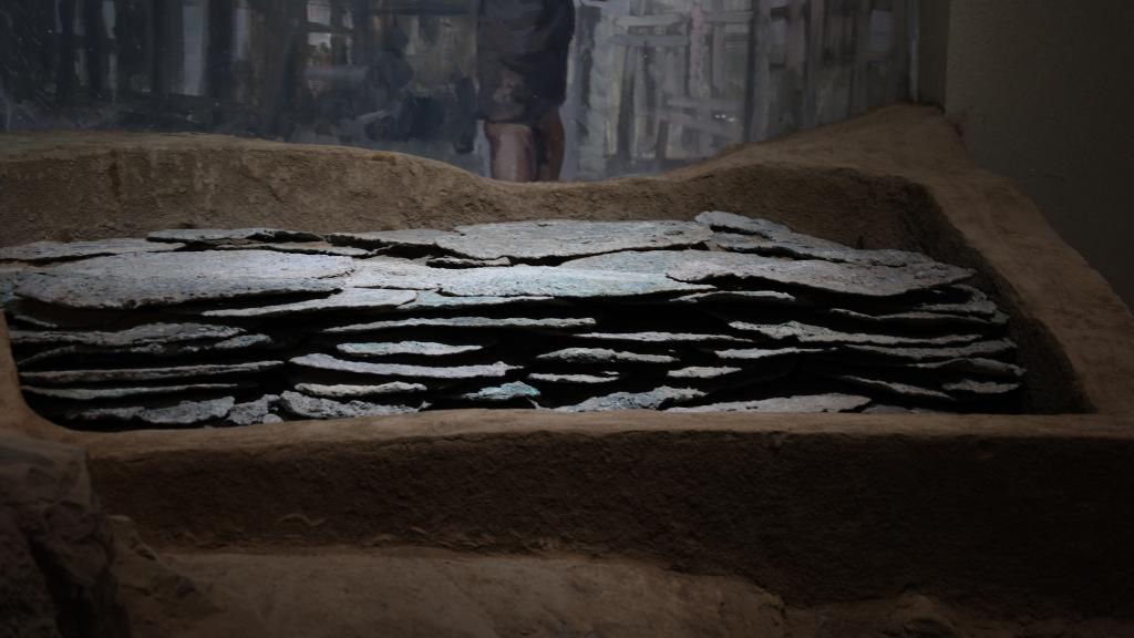 在殷墟博物馆,有一处极易被忽视的角落。面积不大的窖藏坑复原模型里,层层叠叠摞满了铅锭。