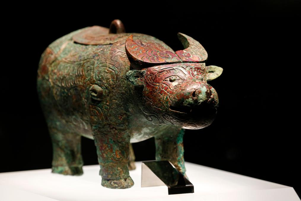这是殷墟博物馆内展出的亚长牛尊。新华社发
