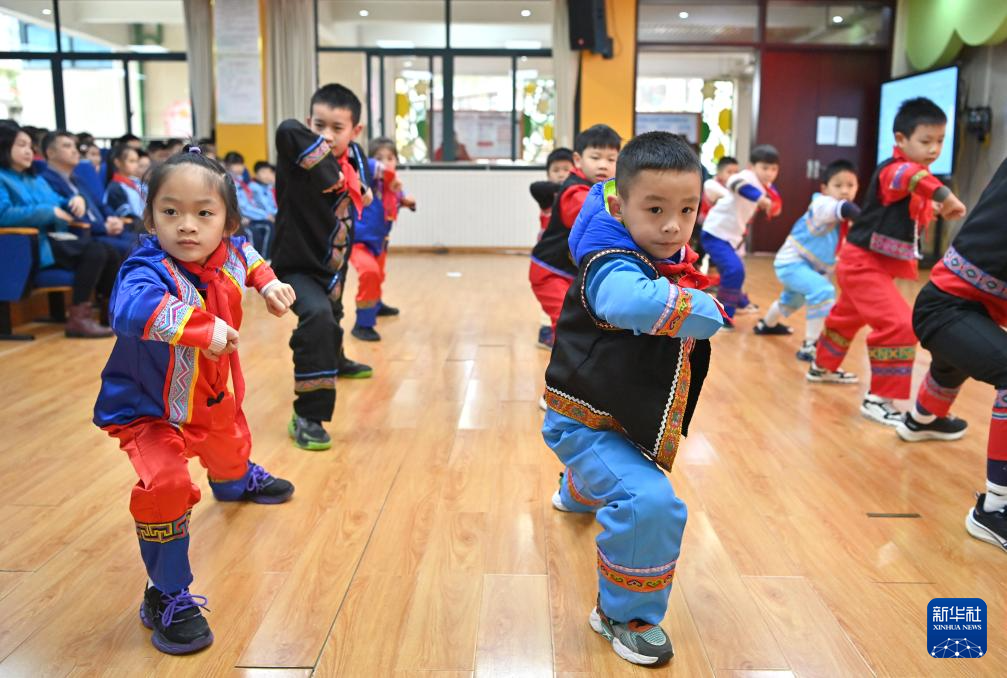2月26日,在南宁市百花岭路小学2024年春季学期开学仪式上,孩子们表演壮拳。新华社记者 周华 摄