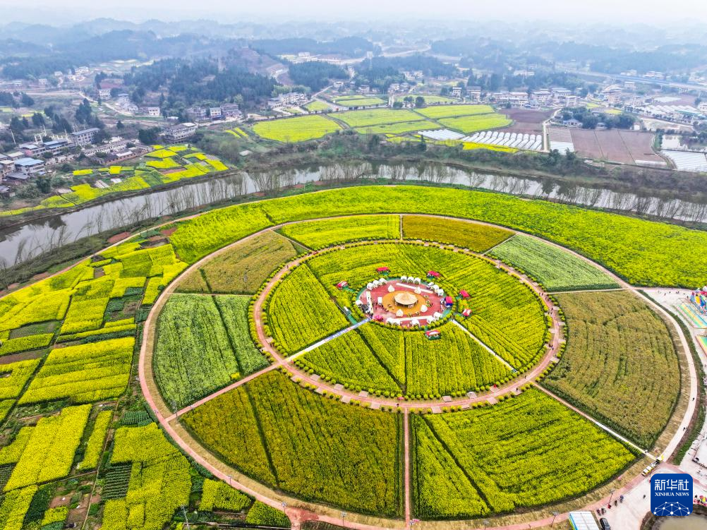 这是3月9日拍摄的重庆潼南崇龛花海景区景象(无人机照片)。新华社记者 王全超 摄