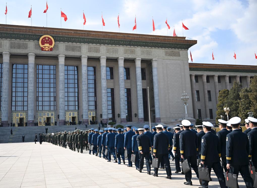 3月11日,第十四届全国人民代表大会第二次会议在北京人民大会堂举行闭幕会。这是全国人大代表走向人民大会堂。新华社记者 牟宇 摄