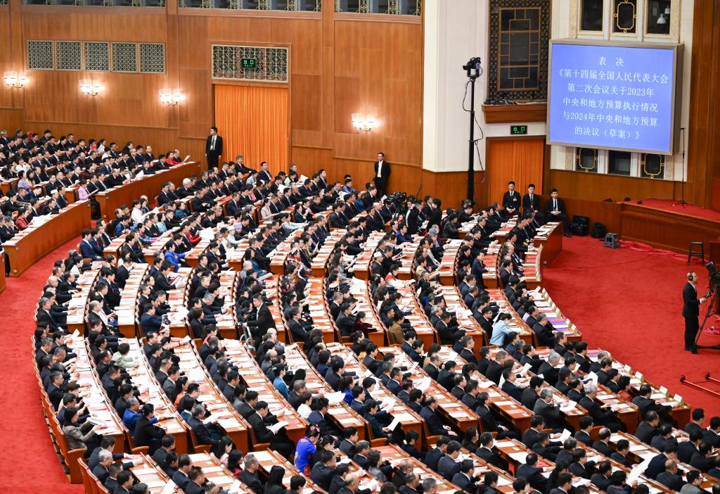 3月11日,第十四届全国人民代表大会第二次会议在北京人民大会堂举行闭幕会。新华社记者 岳月伟 摄