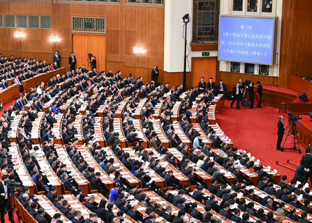 3月11日,第十四届全国人民代表大会第二次会议在北京人民大会堂举行闭幕会。新华社记者 丁海涛 摄