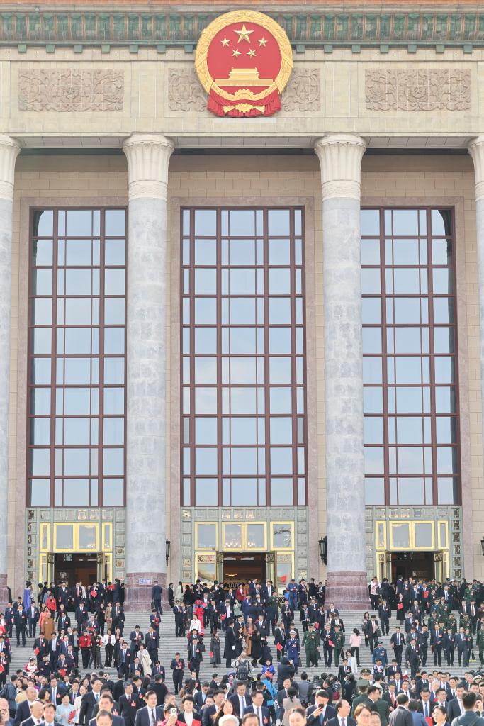 3月11日,第十四届全国人民代表大会第二次会议在北京人民大会堂举行闭幕会。这是闭幕会后,代表们走出人民大会堂。新华社记者 金立旺 摄