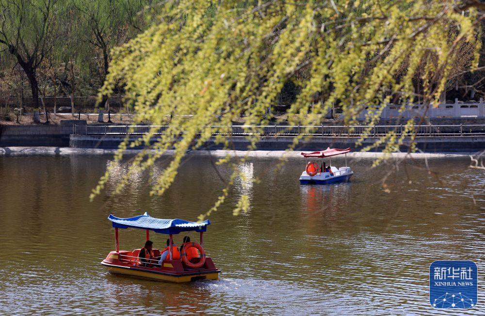 3月20日,游客在河北省石家庄市水上公园划船游玩。新华社发(梁子栋摄)