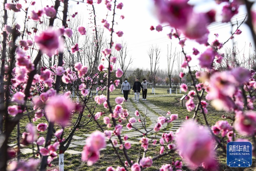 3月20日,市民在河南省济源市植物园踏青休闲。新华社发(苗秋闹摄)