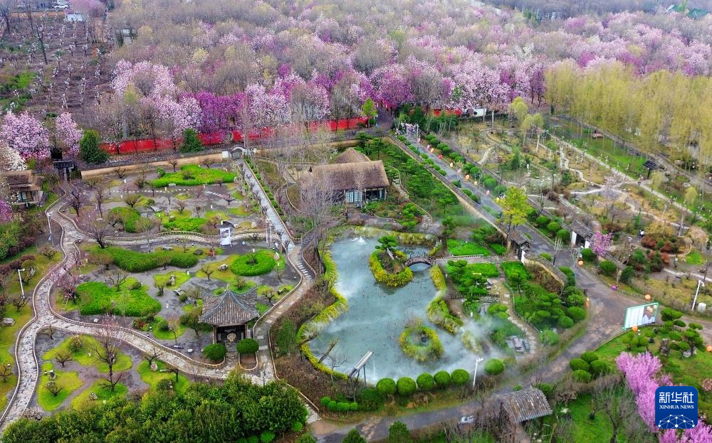 这是3月27日拍摄的位于河南省鄢陵县的一处园林(无人机照片)。新华社发(王永涛摄)