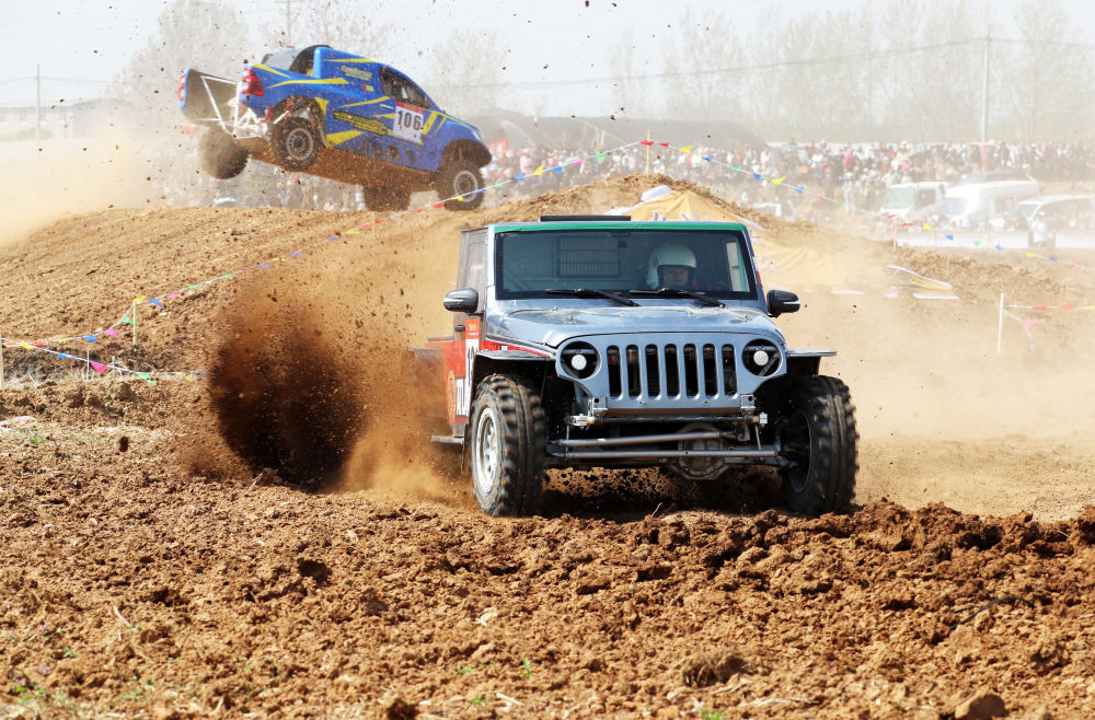 ↑2024年4月5日,河南省许昌市襄城县,第七届首山油菜花旅游文化节系列活动之一——首届“楠山印”杯首山中国汽车场地越野邀请赛举办,参赛选手驾驶车辆在赛道上驰骋。CICPHOTO/牛书培 摄