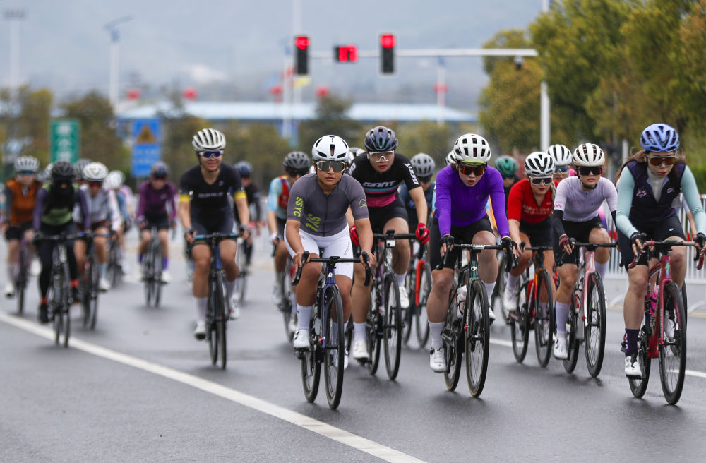 ↑2024年3月31日,安徽省黄山市黟县,第十九届中国黄山(黟县)自行车公开赛展开公路赛角逐,选手们在比赛中。CICPHOTO/施亚磊 摄