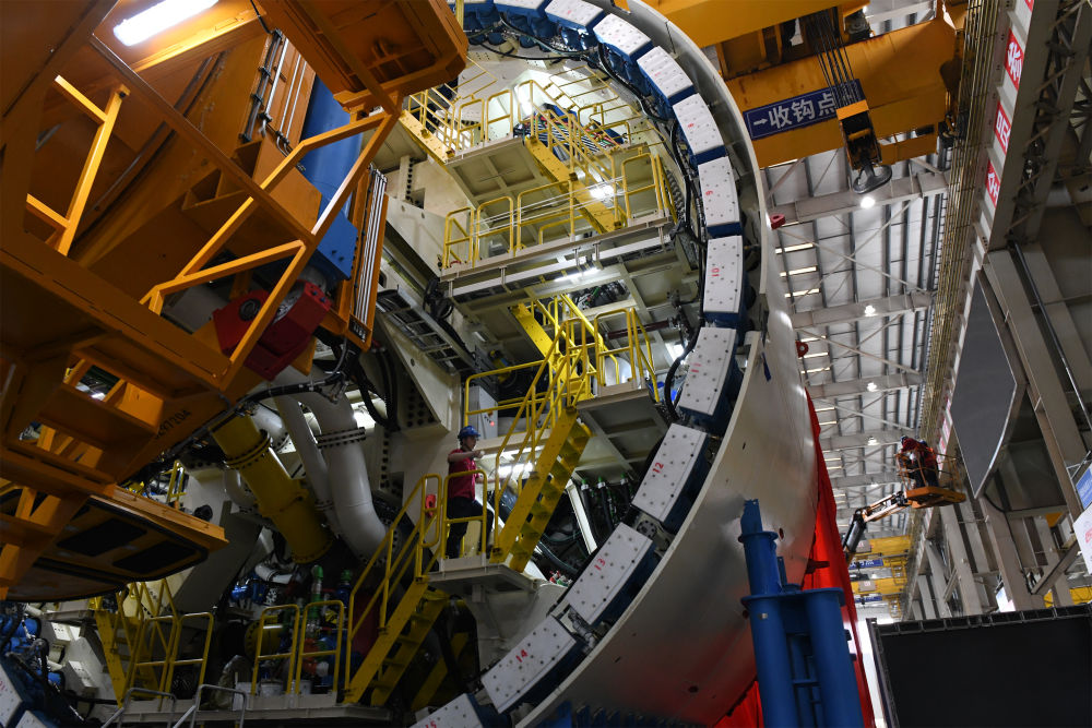 ↑4月25日夜,中铁十一局的工程师对“羊城号”进行验收。新华社发(王荃荃 摄)