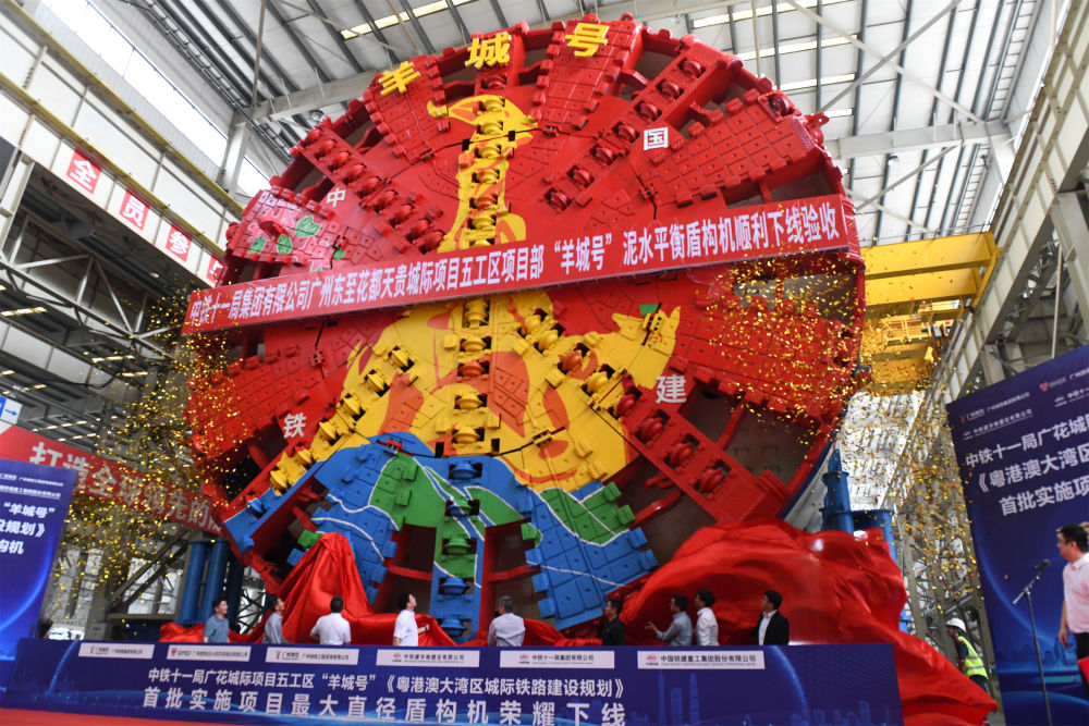 4月26日,由中铁十一局和铁建重工共同研制的超大直径泥水平衡盾构机“羊城号”,在湖南长沙成功下线交付。该盾构机最大开挖直径13.56米,总重3350吨,将担负广州东至花都天贵城际的施工任务,其成功下线标志着粤港澳大湾区城际铁路建设首批项目中最大直径盾构机取得生产研发新突破。