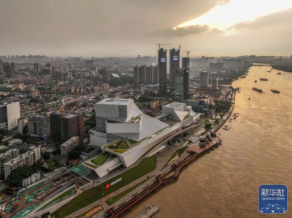 ↑4月27日拍摄的白鹅潭大湾区艺术中心(无人机照片)。新华社记者 刘大伟 摄