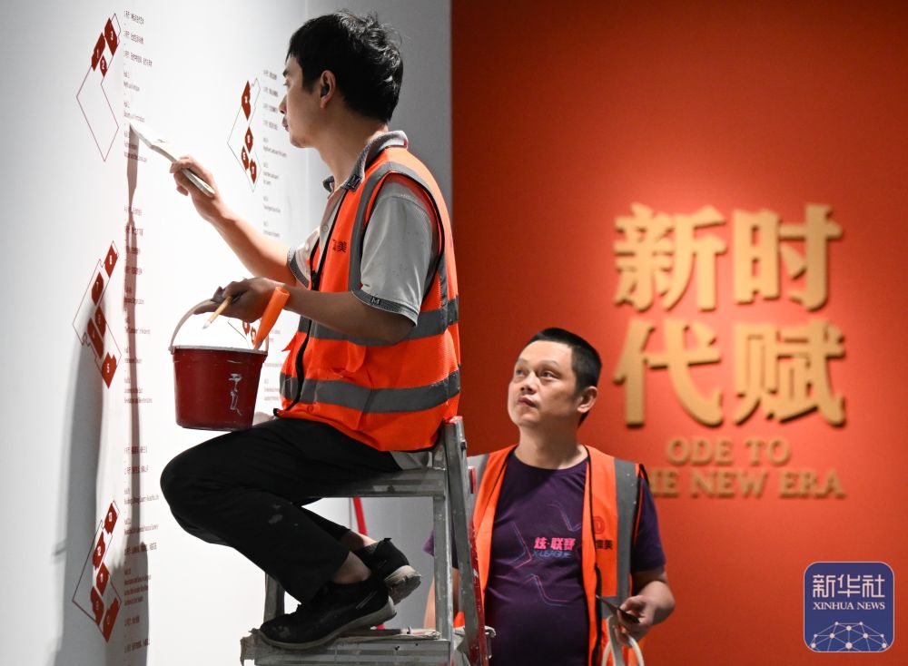 ↑4月27日,工作人员在白鹅潭大湾区艺术中心广东美术馆布展。新华社记者 刘大伟 摄