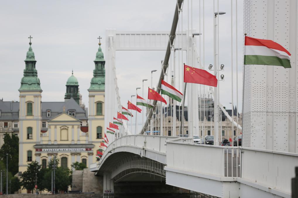 当地时间5月8日晚,国家主席习近平乘专机抵达布达佩斯,应匈牙利总统舒尤克和总理欧尔班邀请,对匈牙利进行国事访问。习近平乘坐的专机抵达布达佩斯国际机场时,匈牙利总理欧尔班夫妇、外长西雅尔多等政府高级官员热情迎接。两国领导人夫妇亲切握手致意,欧尔班总理向彭丽媛教授献花。礼兵在红毯两侧列队致敬。