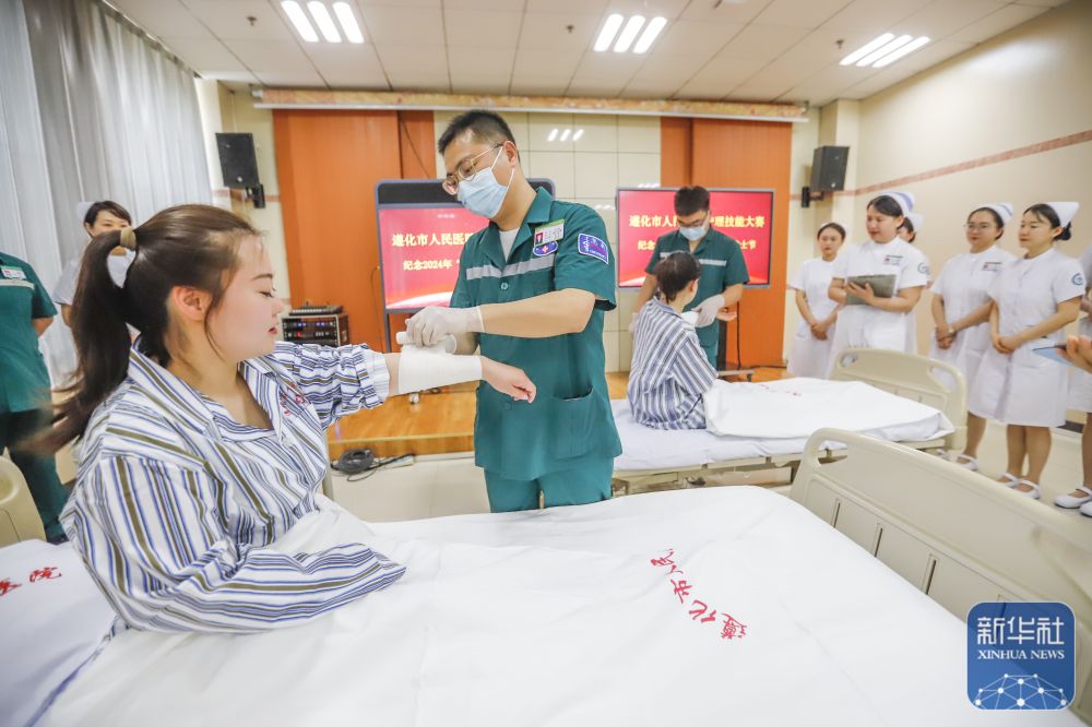 5月10日,河北省遵化市人民医院的护士在参加技能比赛。新华社发(刘满仓摄)