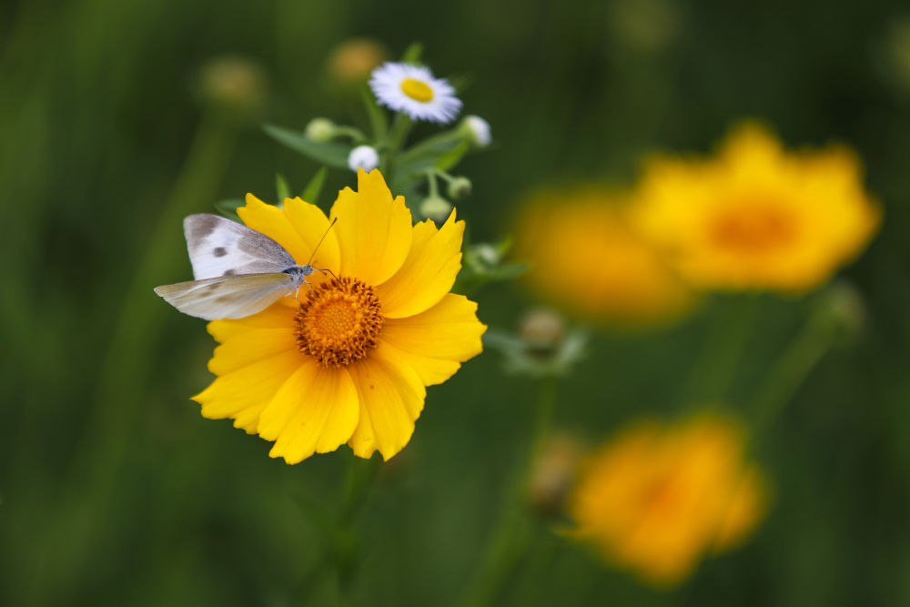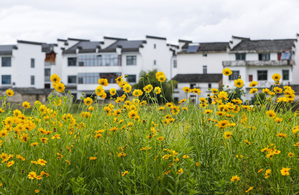↑2024年5月5日,安徽省黄山市徽州区西溪南镇乡村道路旁的金鸡菊盛开。CICPHOTO/施亚磊 摄