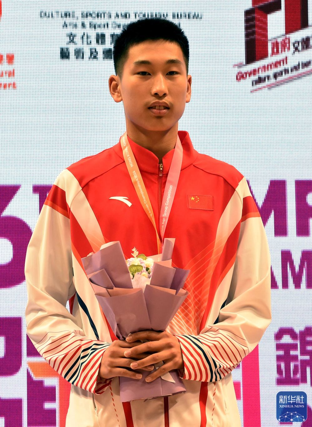 ⬆️中国运动员李宇名在男子成年组决赛后的颁奖仪式上,他以59.43分的成绩获得冠军。