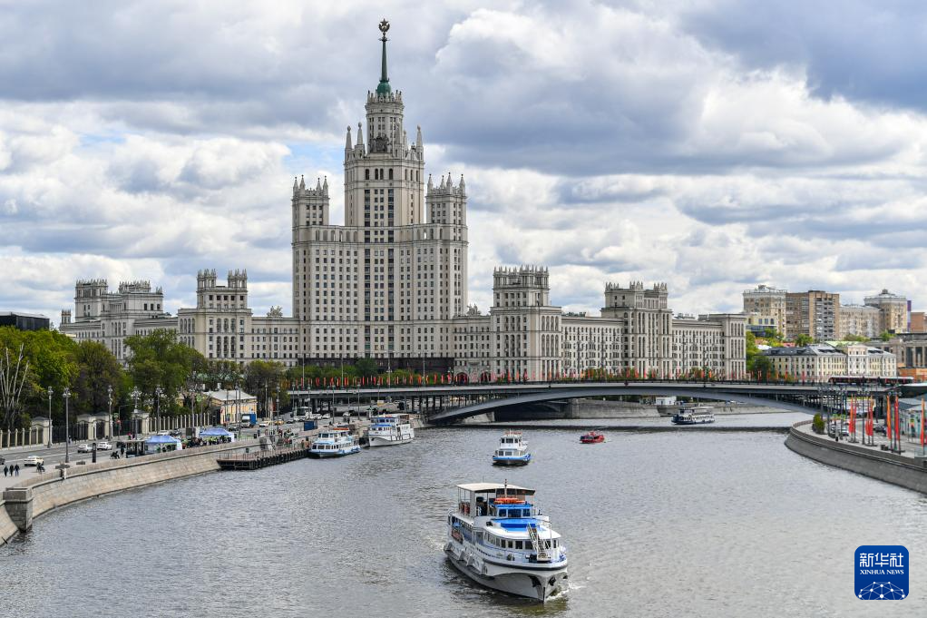 这是5月11日在俄罗斯首都莫斯科拍摄的莫斯科河两岸风景。新华社记者 曹阳 摄