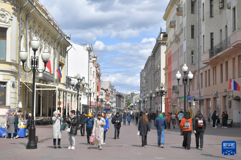 这是5月11日在俄罗斯首都莫斯科拍摄的老阿尔巴特街。新华社发(亚历山大摄)