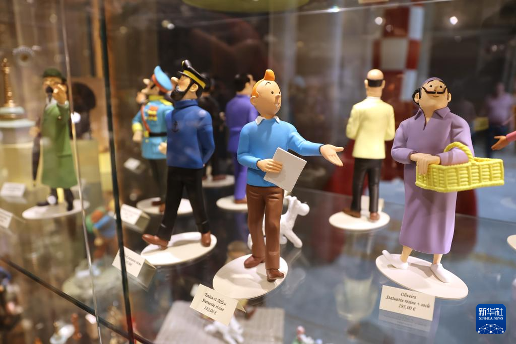 这是5月18日在比利时布鲁塞尔的漫画博物馆拍摄的丁丁系列人物玩偶。新华社记者 赵丁喆 摄