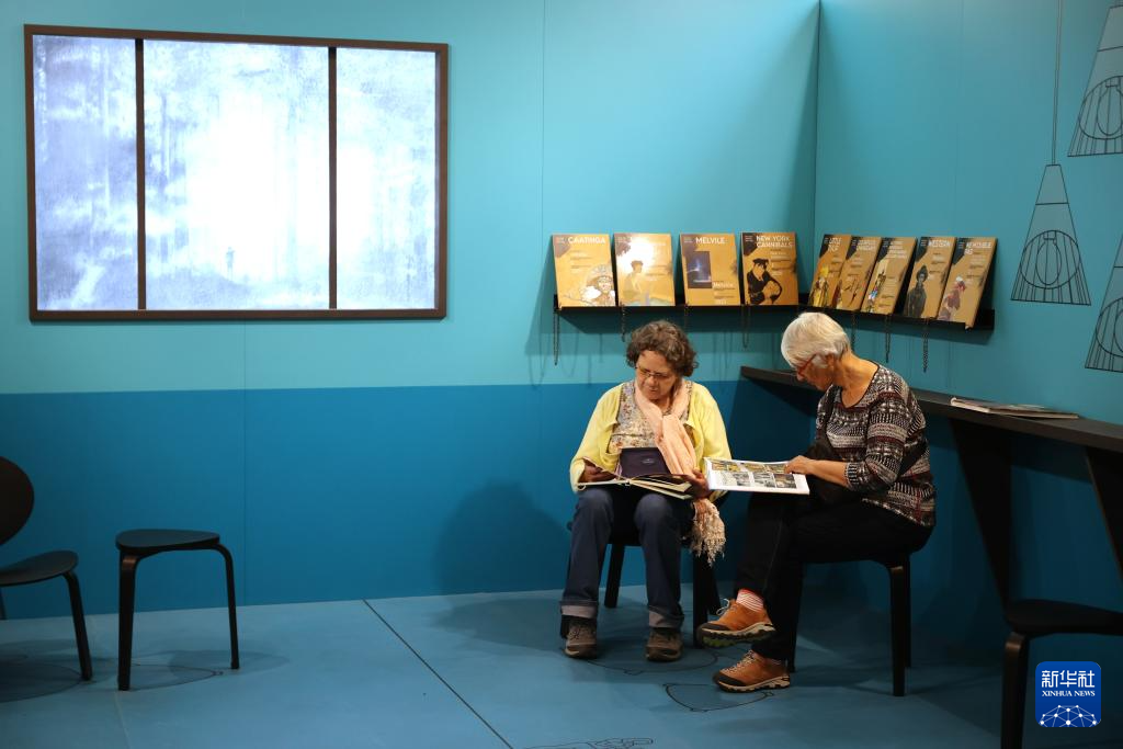 5月18日,人们在比利时布鲁塞尔的漫画博物馆阅读漫画。新华社记者 赵丁喆 摄