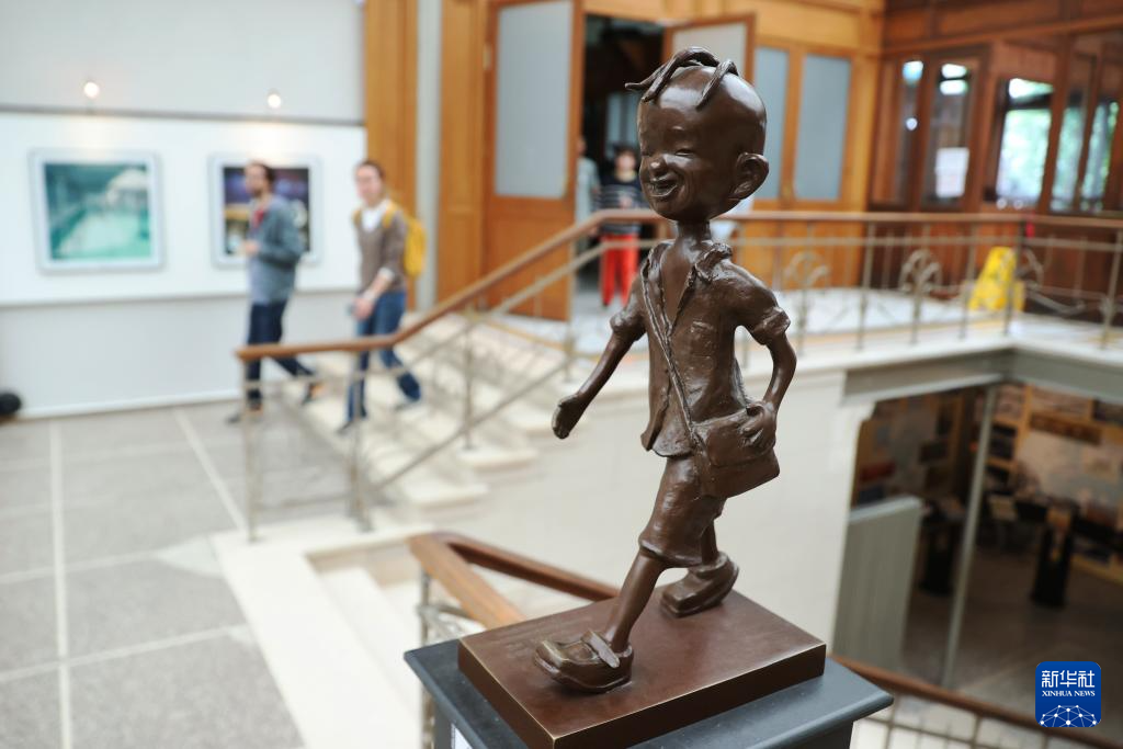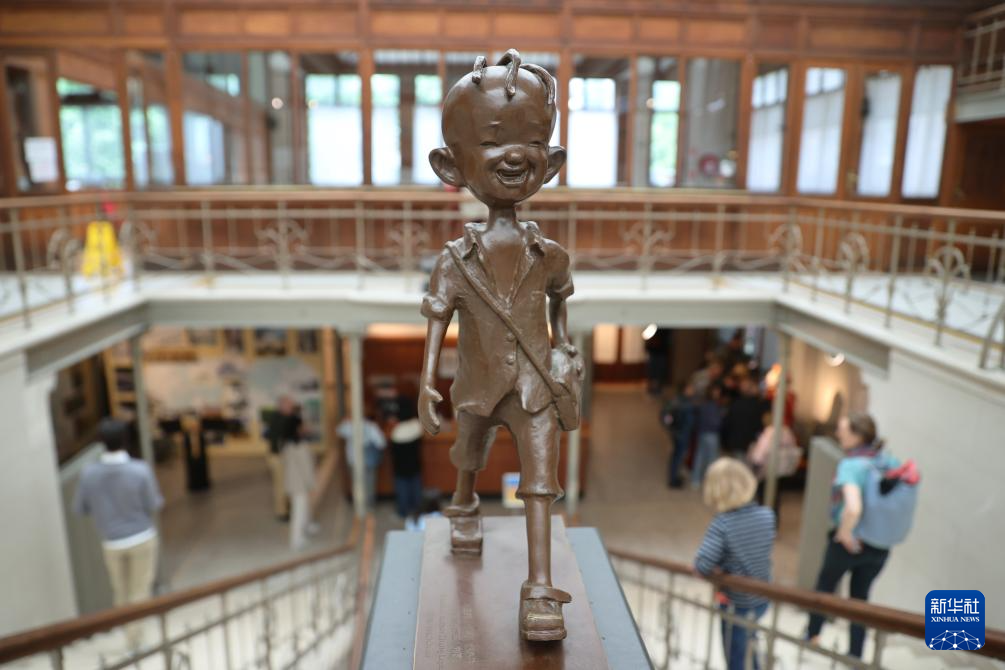 这是5月18日在比利时布鲁塞尔的漫画博物馆拍摄的三毛像。新华社记者 赵丁喆 摄