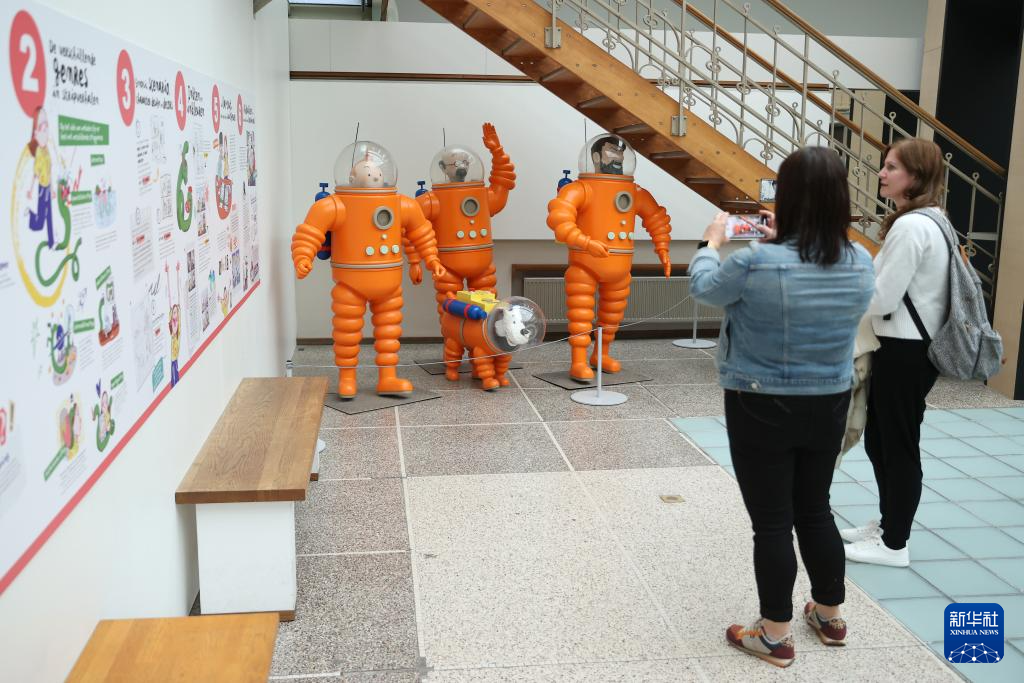 5月18日,人们在比利时布鲁塞尔的漫画博物馆参观拍照。新华社记者 赵丁喆 摄