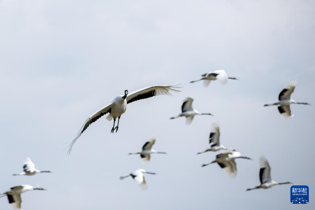 这是5月21日在扎龙国家级自然保护区拍摄的丹顶鹤。新华社记者 张涛 摄