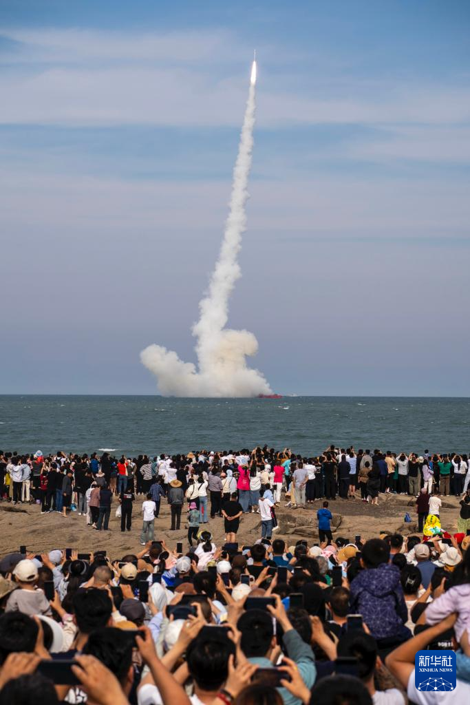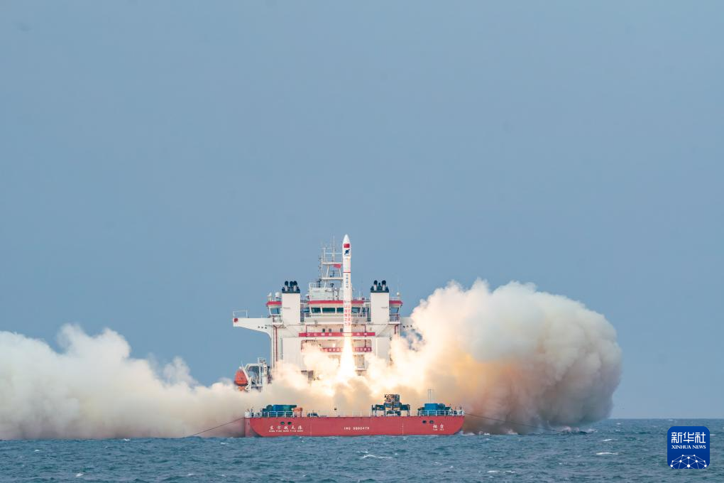 5月29日16时12分,我国太原卫星发射中心在山东附近海域成功发射谷神星一号海射型遥二运载火箭,搭载发射的天启星座25星-28星顺利进入预定轨道,飞行试验任务获得圆满成功。新华社发(李超 摄)
