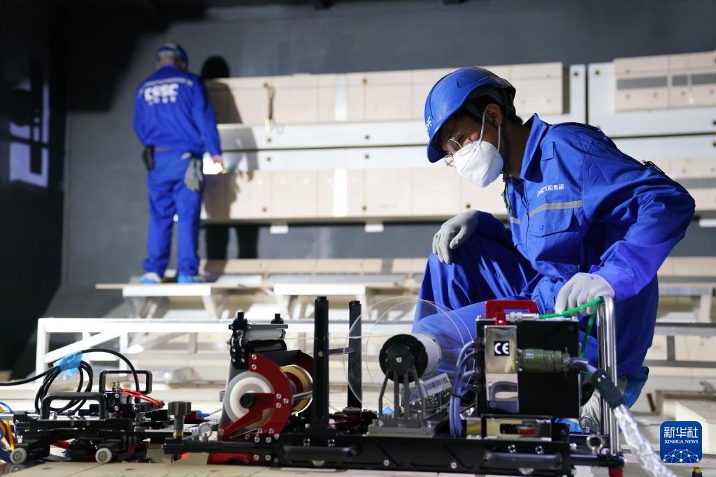 6月15日,工作人员在中国船舶大连造船公司忙碌。新华社记者樊雨晴 摄