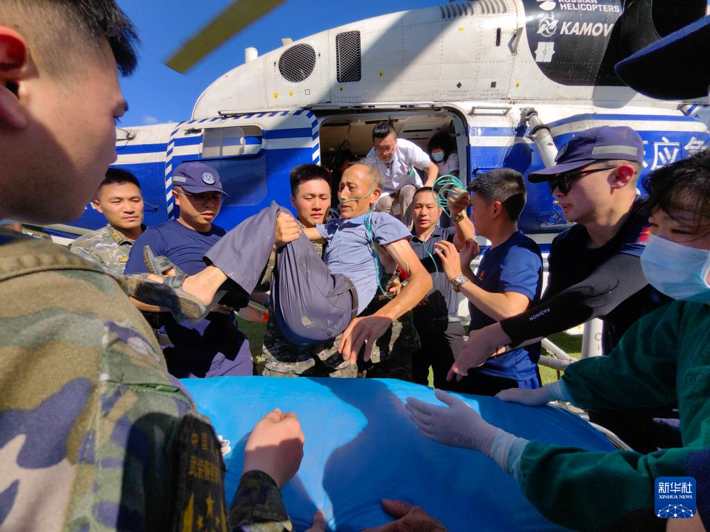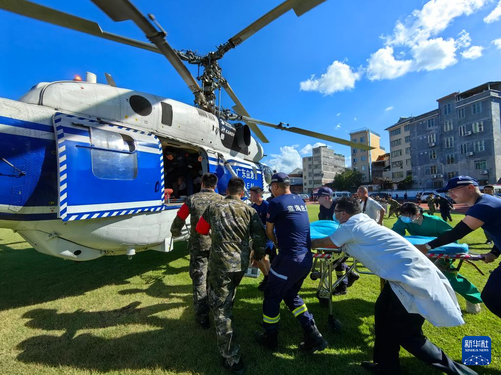 6月19日,广东省梅州市平远县人武部紧急组织民兵转运救治伤员。新华社发(曾瑜 摄)