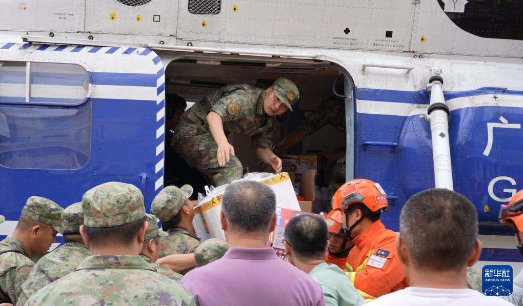 6月19日,广东省梅州市蕉岭县人武部组织专武干部和民兵到南磜镇石寨村运送食品物资。新华社发(钟芬芳 摄)
